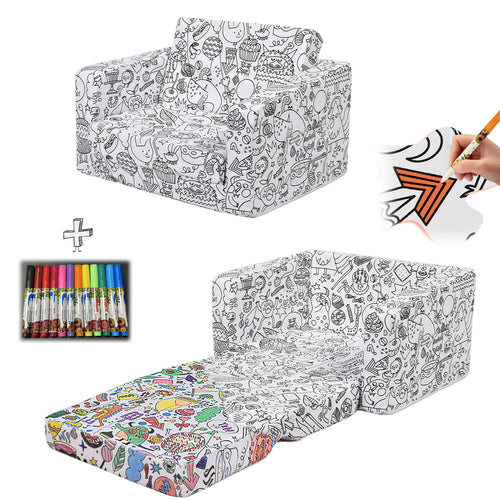 2-in-1 Toddler Sofa Bed - Fairy Tale Coloring Kids Couch for Playroom, Convertible Sofa to Lounger Washable Cover