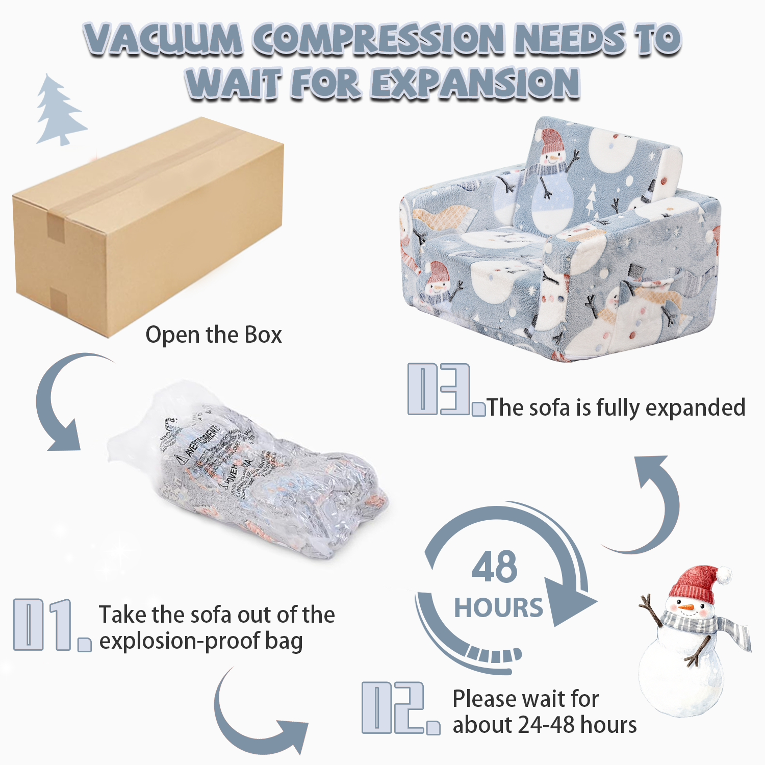 Toddler Chair – Convertible Glowing Snowman Flip-Out Kids Sofa | Kids Couch with Blanket – Soft Filled, Ideal for Playroom & Bedroom (Snowman)